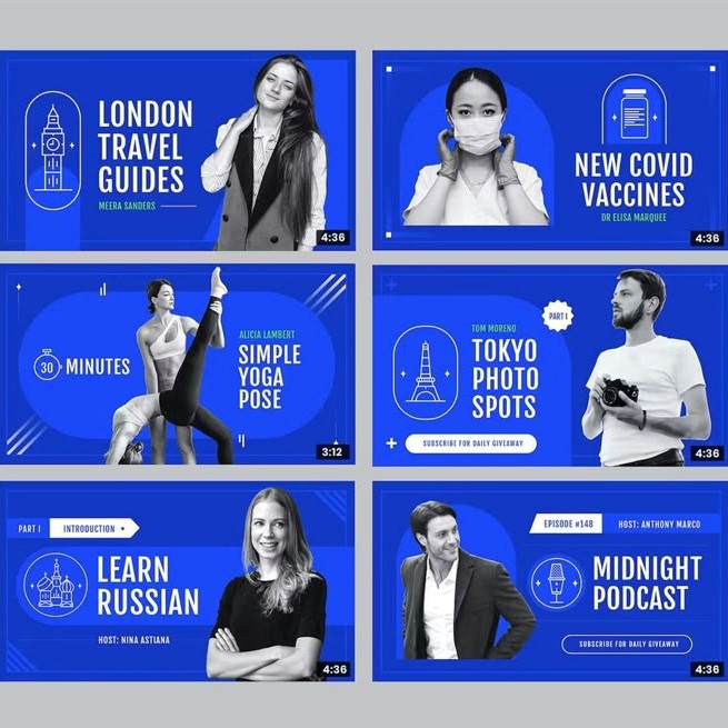 Our YouTube templates are crafted to help you attract more views and subscribers. Thumbnails are designed with bold text, high-contrast visuals, and engaging layouts to increase clicks, while banners ensure your channel looks professional. Perfect for vloggers, businesses, and content creators, these fully editable templates allow you to maintain a cohesive brand identity while standing out in the crowded YouTube space.